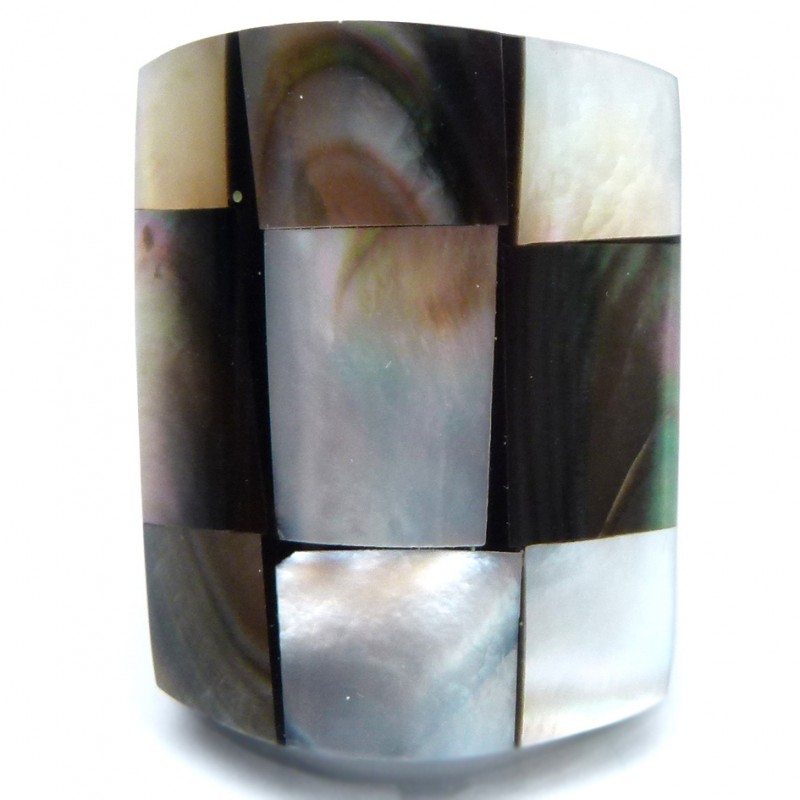 Cette bague est fabriquée à la main, elle est réalisée en résine, incrustée de nacre.