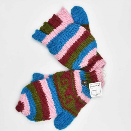 Sympa et pratique cette paire de mitaines en laine. En un clin d'oeil se transforme en moufles grace au rabat fixé par un bouton.