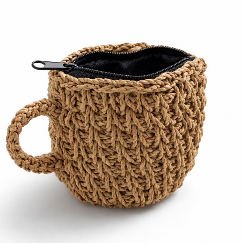 Porte monnaie en fibre de Panganus 10cm sur 9 cm, fermeture par zip.