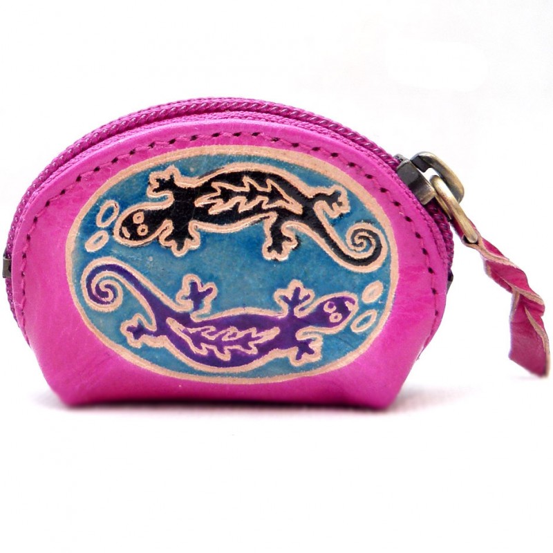 Porte monnaie Macha Art en cuir 2gecko avec motif 7 cm sur 4 cm.