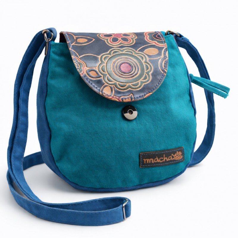 Sac Macha Sagar bleu en Coton avec empiècement cuir